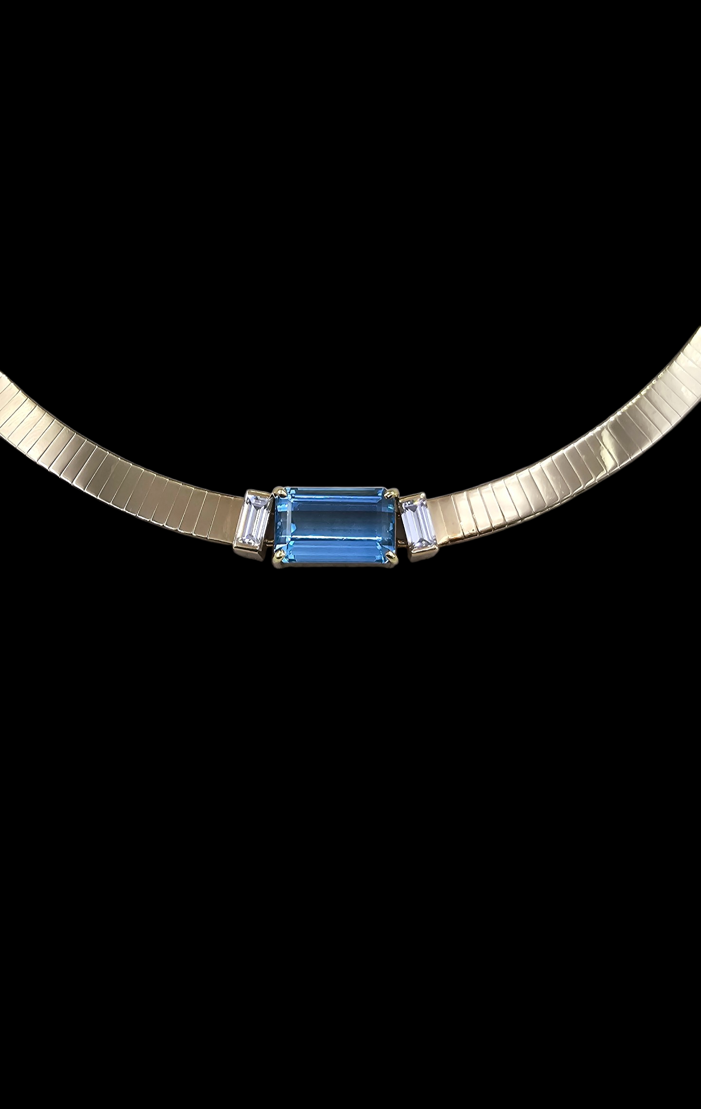 Aquamarin Collier mit Baguette Diamanten
