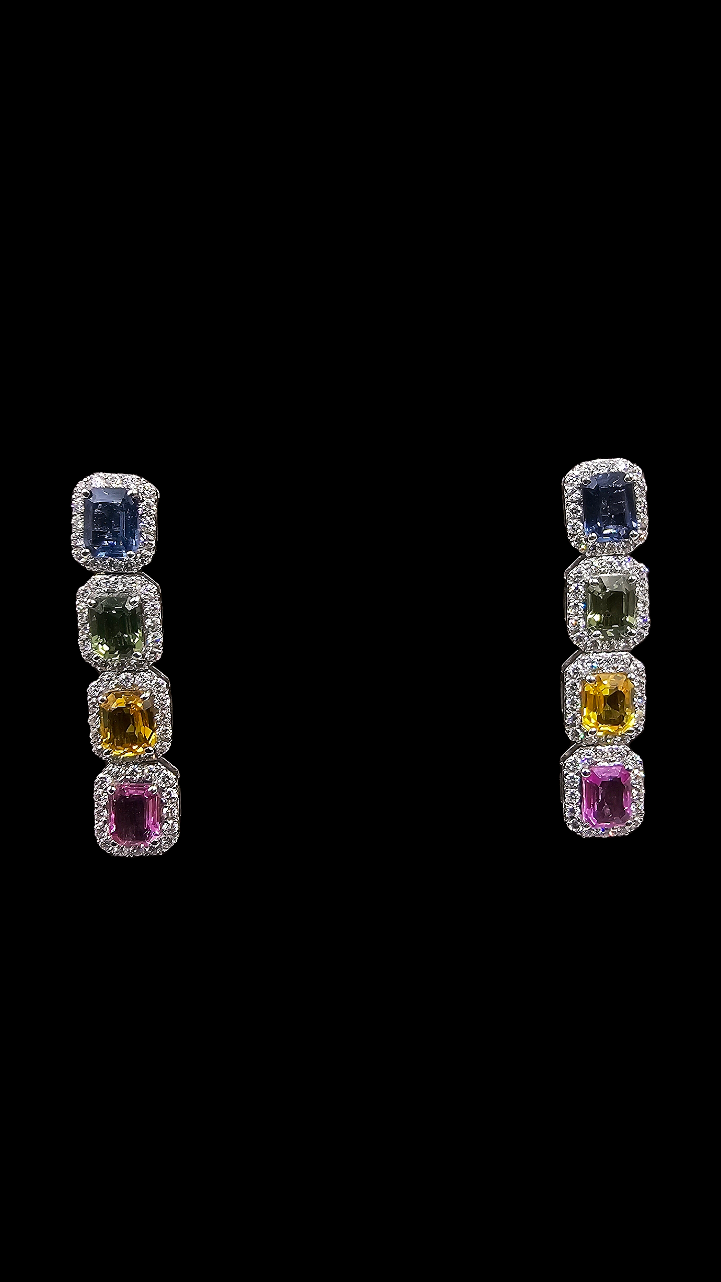 Elegante Multi Colour Saphir Ohrringe mit farbigen Steinen aus 18 kt. Weißgold – ein echter Hingucker.