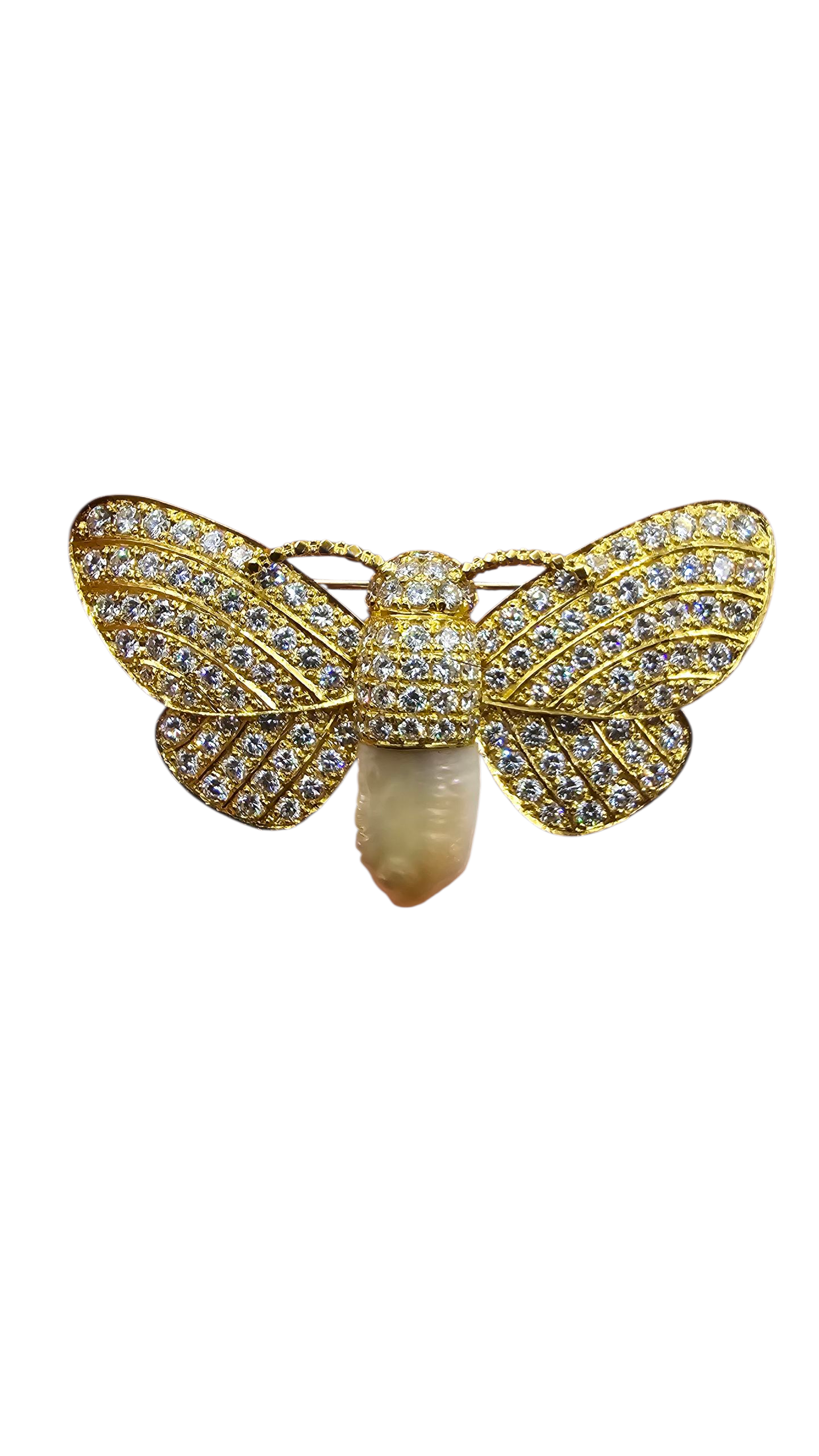 Wunderschöne einzigartige Schmetterling Brosche mit Brillanten und eine Perle.